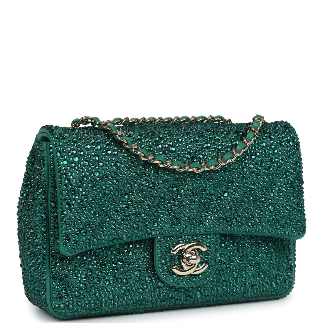 Chanel Mini Flap Bag Green Swarovski Crystal and Green Lambskin Silver Hardware