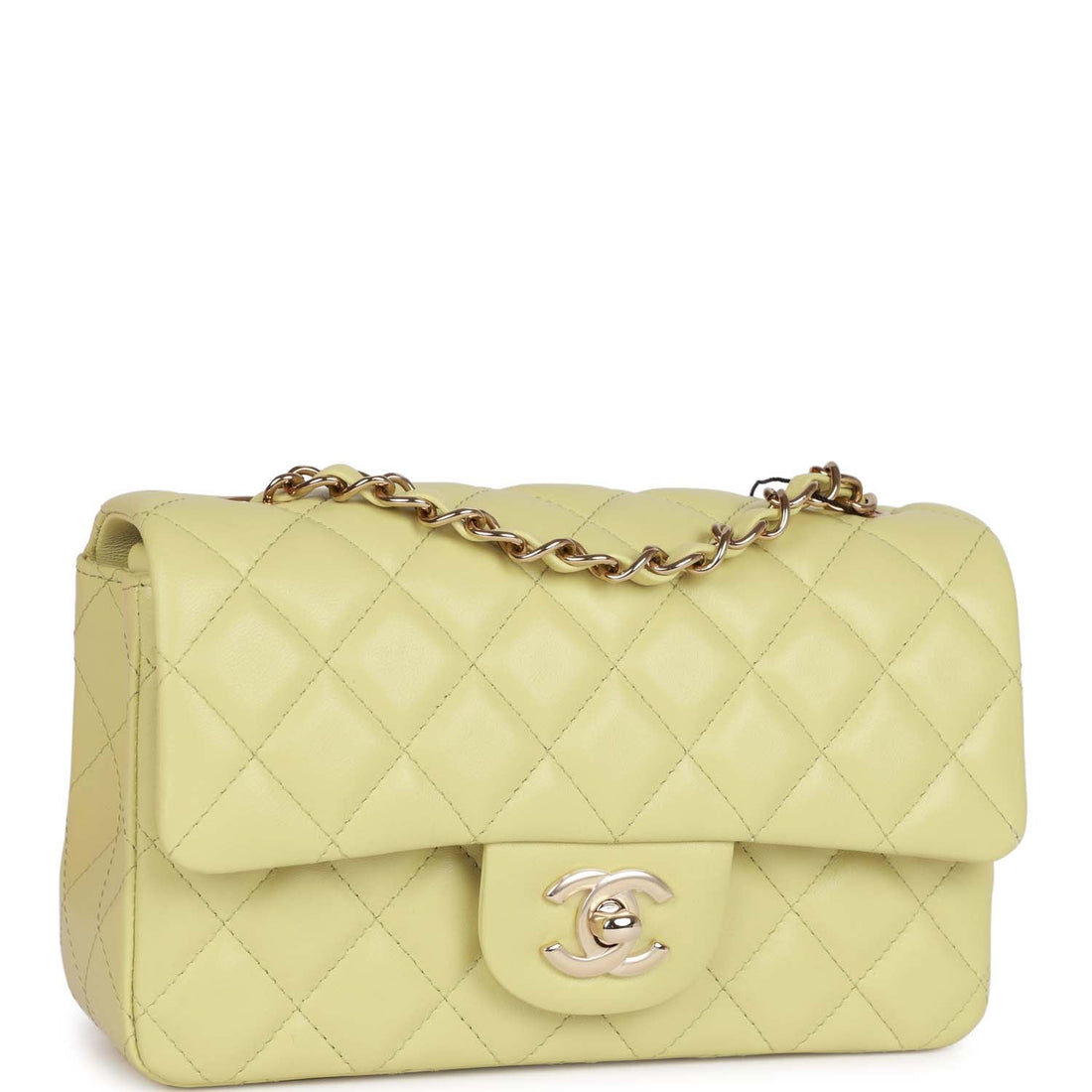 Chanel Mini Rectangular Flap Bag Light Green Lambskin Light Gold Hardware