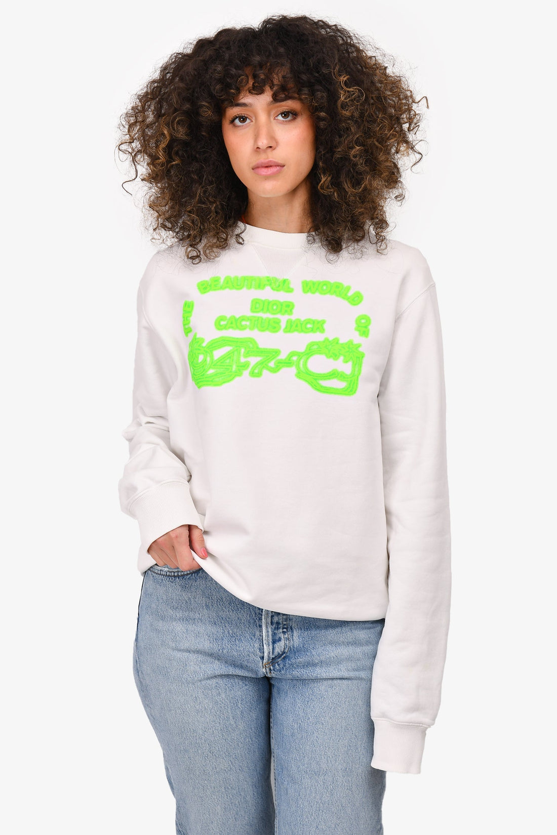 Christian Dior X Cactus Jack White/Green Logo Crew Neck Sweater Size M Mens