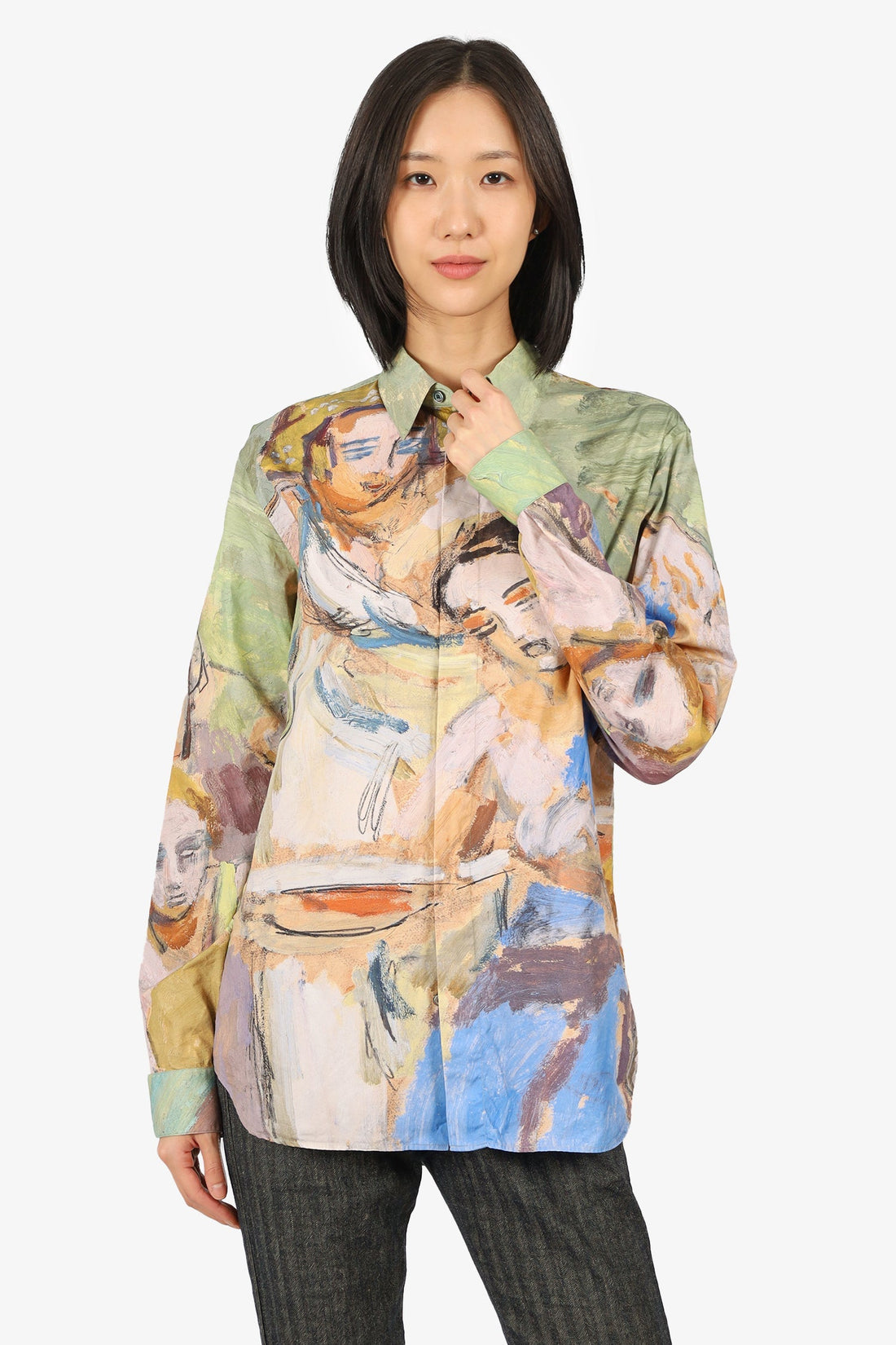 Dior x Duncan Grant x Charleston Green/Blue Abstract Painted Button Up Shirt. Collared neckline. Front...
