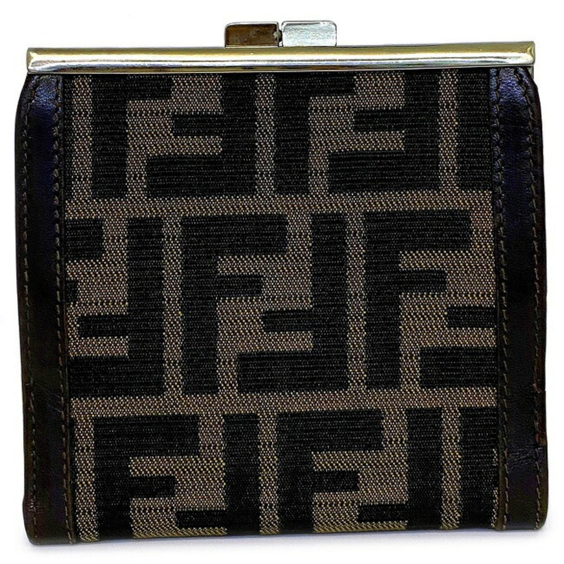 Fendi Zucca F-14349 Women's Leather,Canvas Wallet (bi-fold) Brown,Khaki