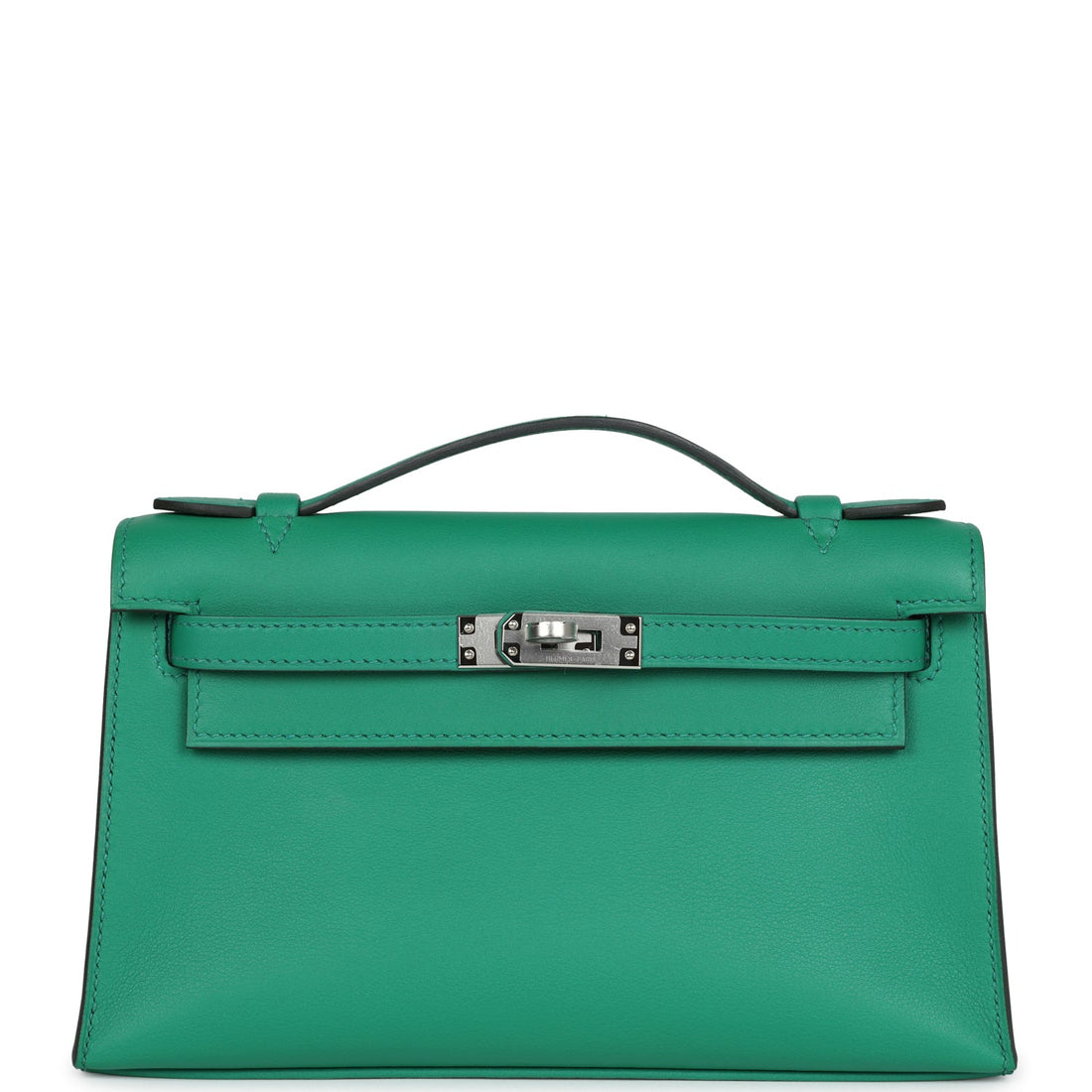 Hermes Kelly Pochette Vert Peppermint Swift Palladium Hardware