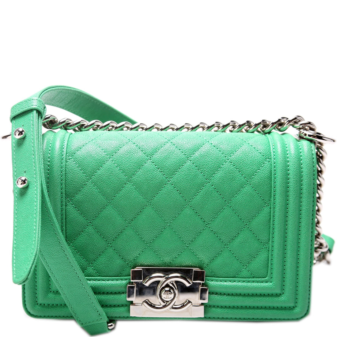 This Chanel Boy Flap Miniis eye catching bag. The exterior is in the classic Chanel...