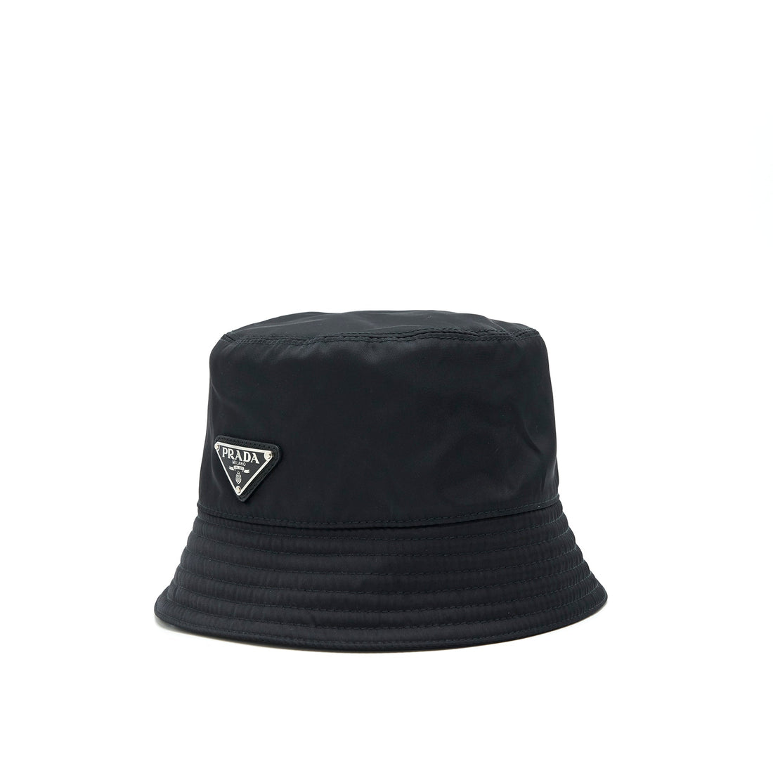 Gucci bucket hat in black nylon with a small 'GG' marmont emblem in gold metal...