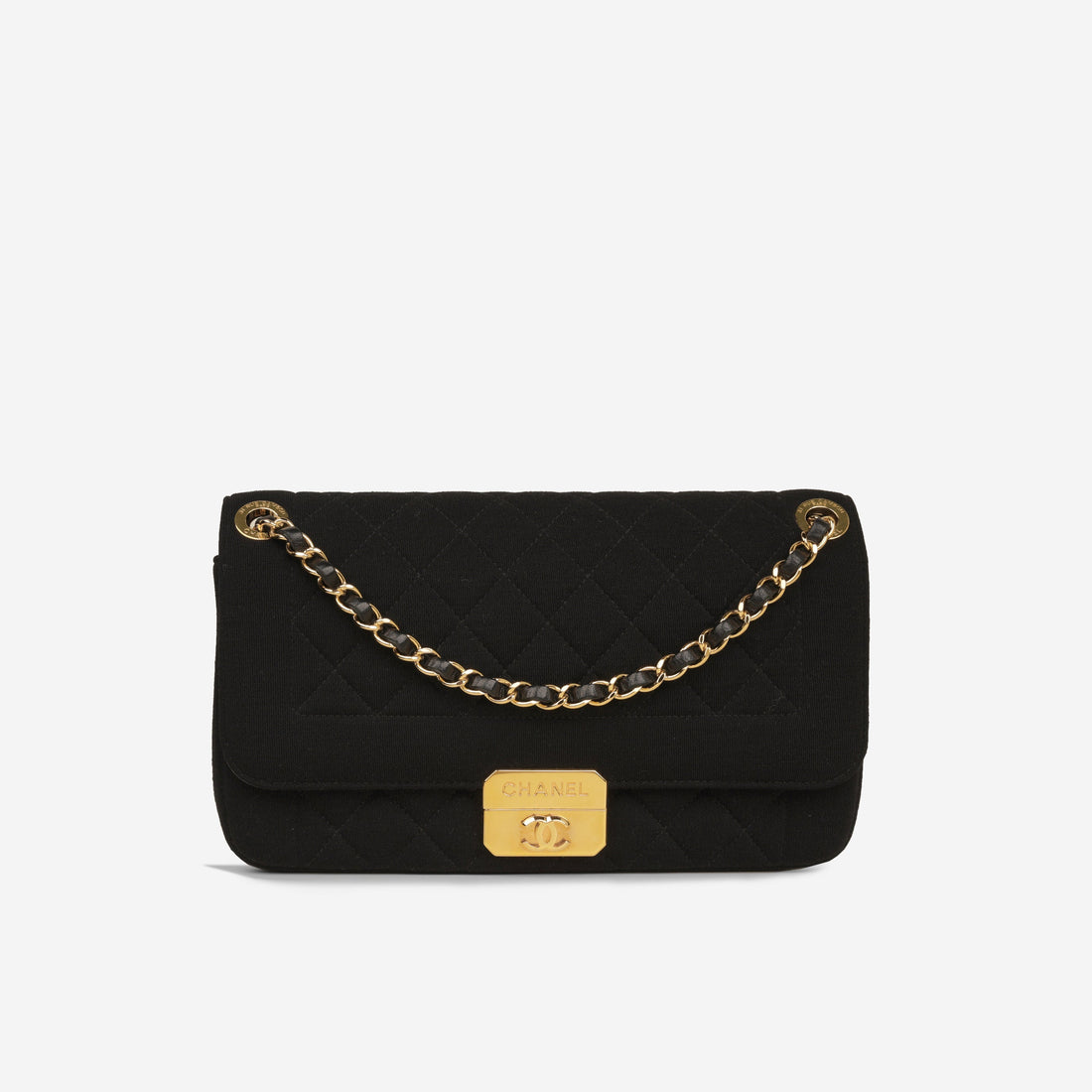 Elevate your style with our Medium Chic With Me Flap in stunning Black Jersey. Crafted...