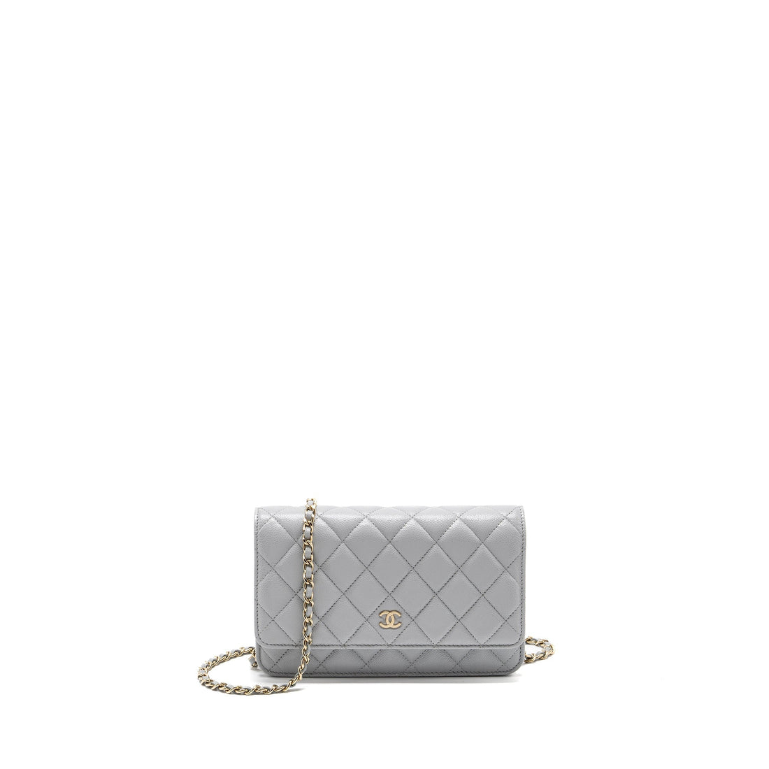 CHANEL Classic Wallet On Chain Caviar Light Grey LGHW (Microchip)