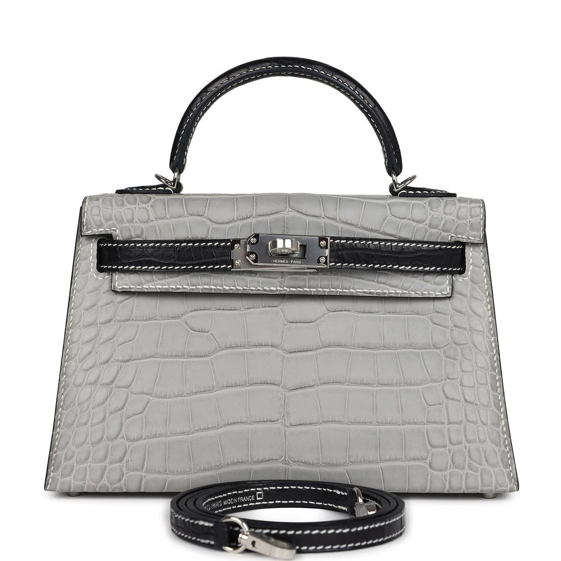 Hermes Special Order (HSS) Kelly Sellier 20 Gris Perle and Black Matte Alligator Palladium Hardware