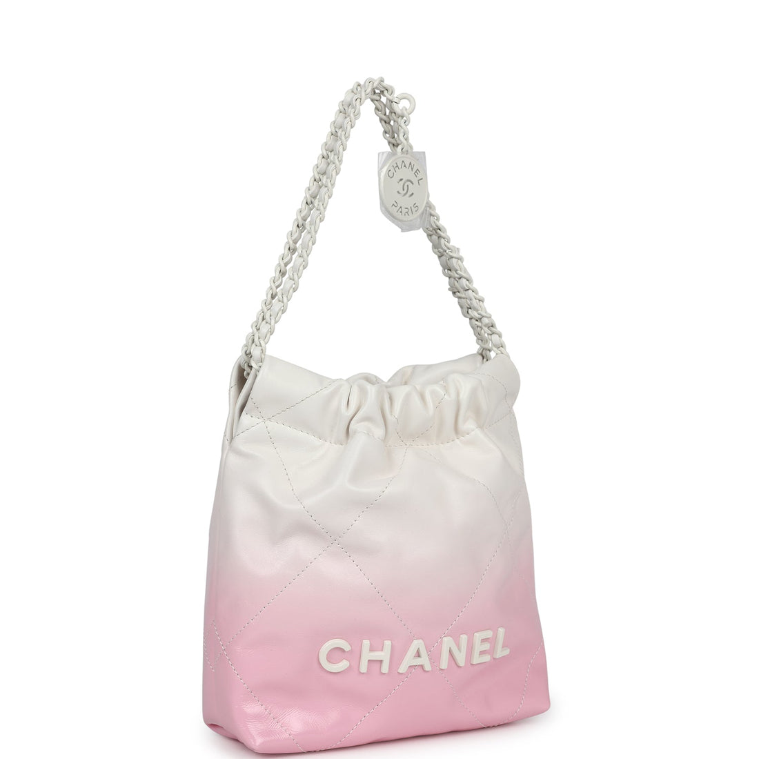 Chanel Mini 22 Bag Pink and White Ombre Calfskin Lacquered Metal Hardware