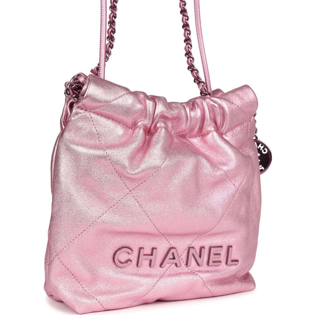 Chanel Mini 22 Bag Pink Metallic Lambskin Lacquered Metal Hardware