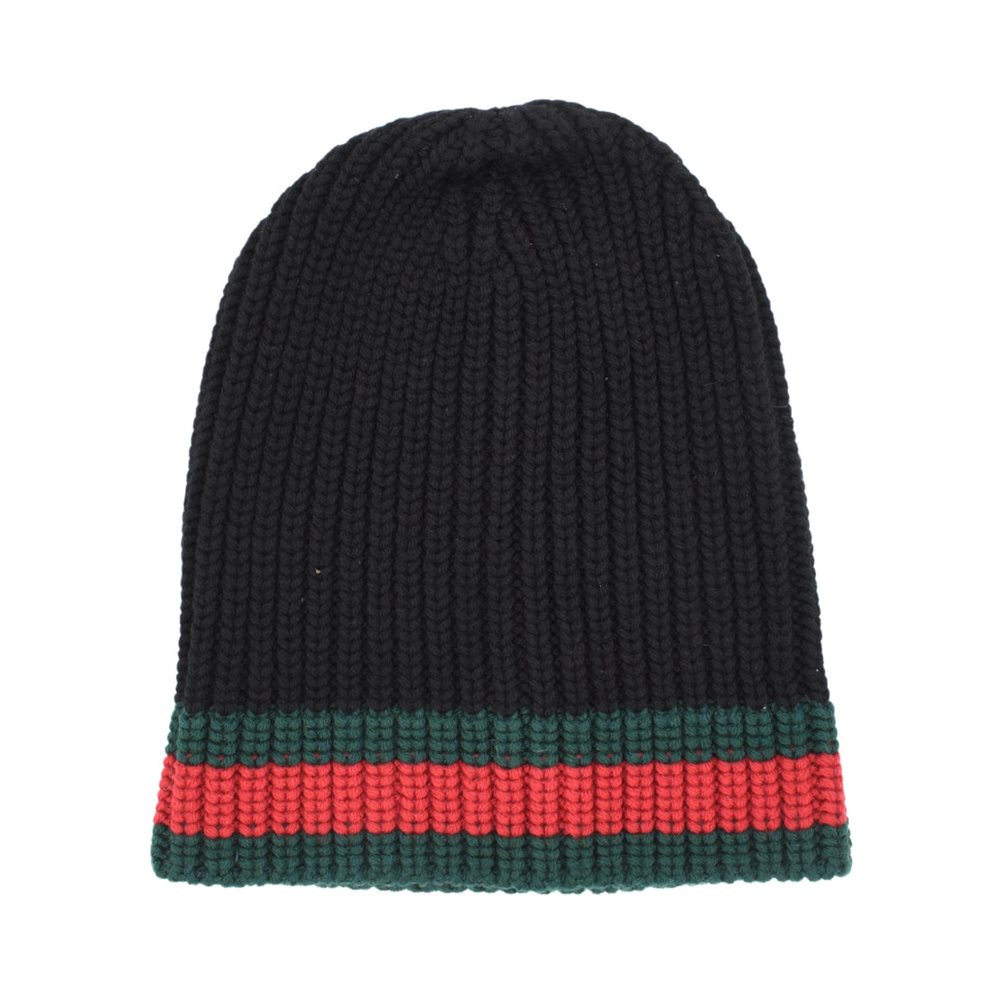 Gucci toque in black wool with a red and green racing stripe trim. Includes box. ...