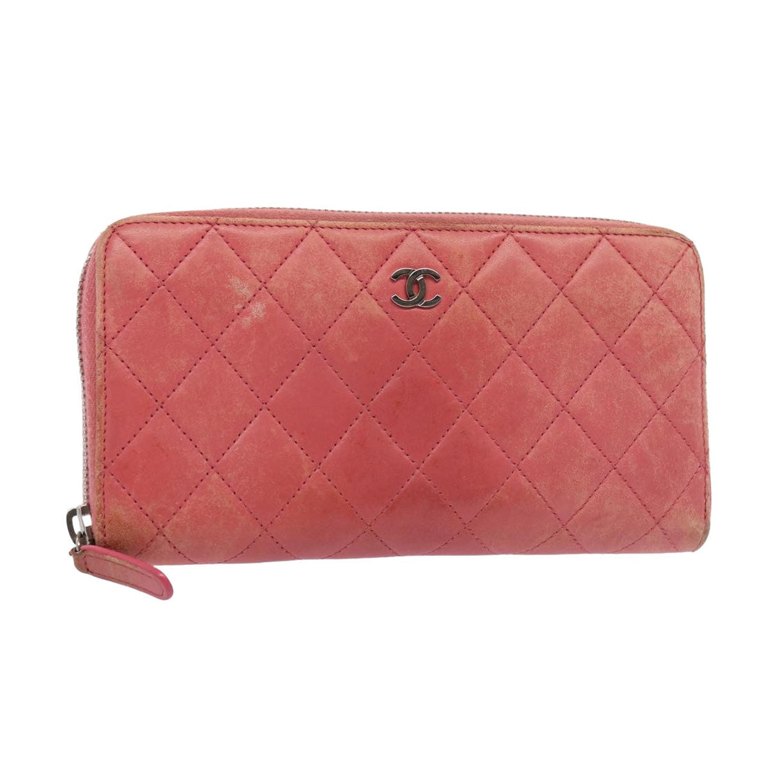CHANEL Matelasse Long Wallet Lamb Skin Pink CC Auth 79765BRAND : CHANEL Color : Pink...