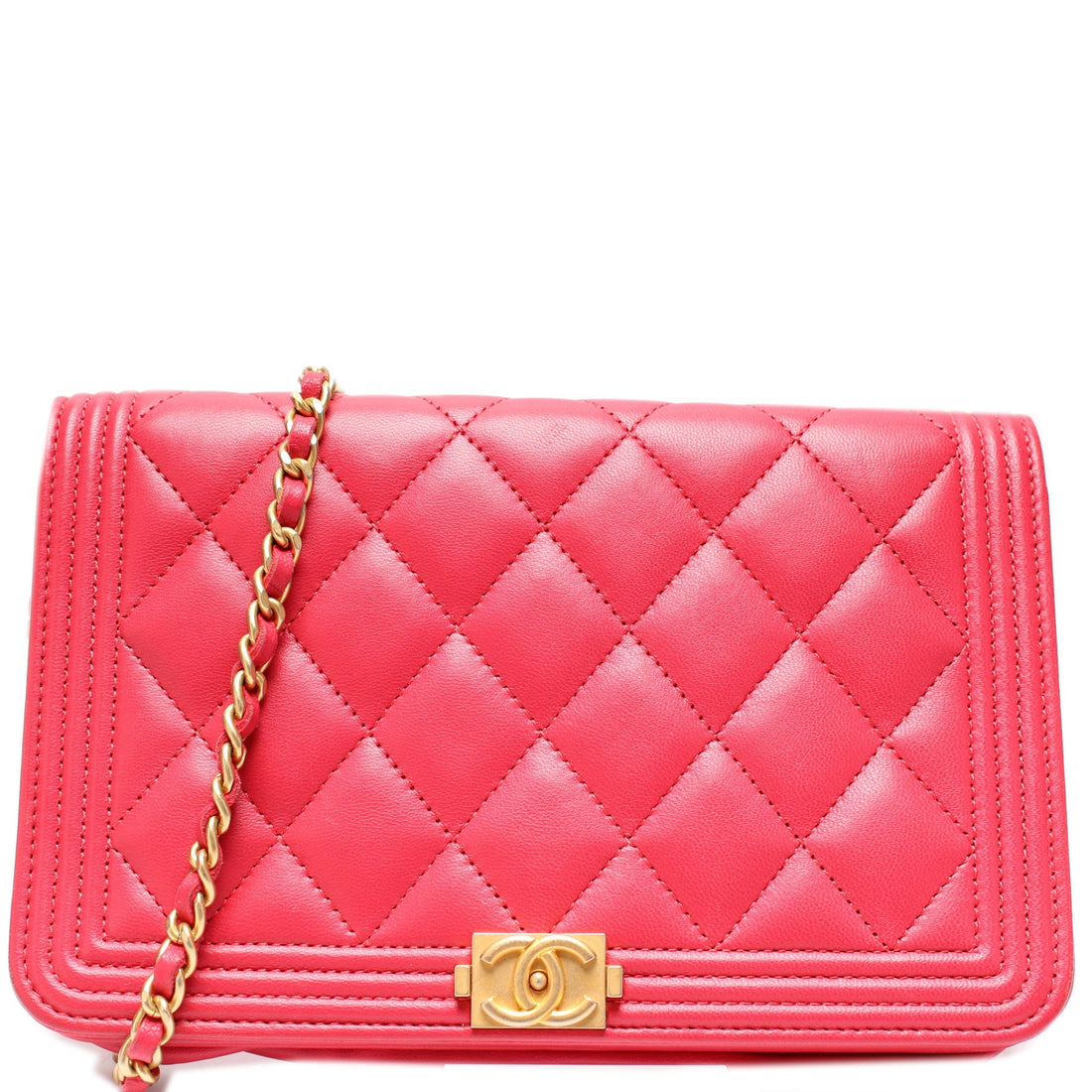 This Chanel Boy WOCis eye catching bag. Condition: Very Good Serial Number: 25017318 Color: Pink and Gold Exterior: The...