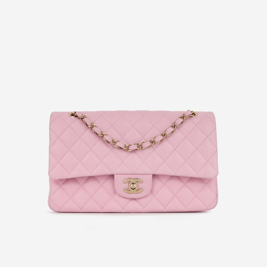 Chanel Medium Classic Flap Pink Caviar Champagne Gold Hardware