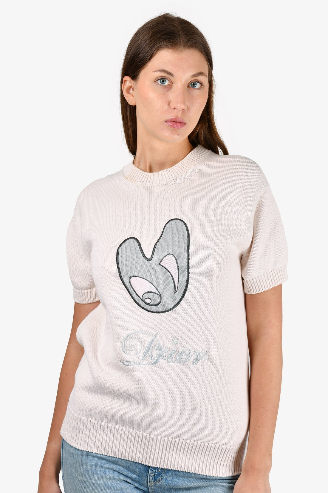 Christian Dior X Kenny Scharf Pink Embroidered Knit Sweater. Round neck. Ribbed neck, cuffs and...