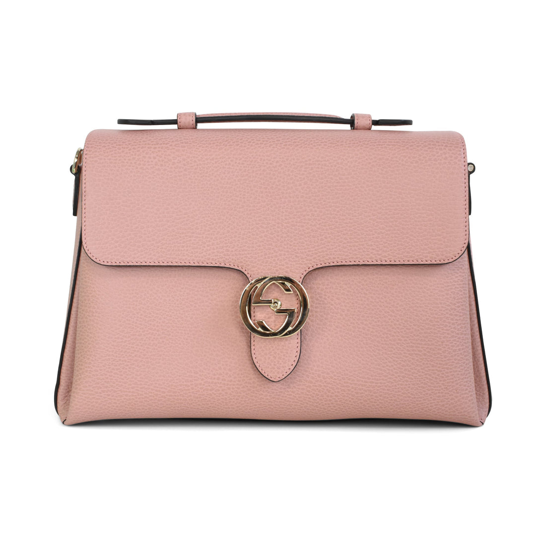 Gucci 'Dollar Interlocking' hand bag in pink pebbled leather with a top handle, a top-flap...