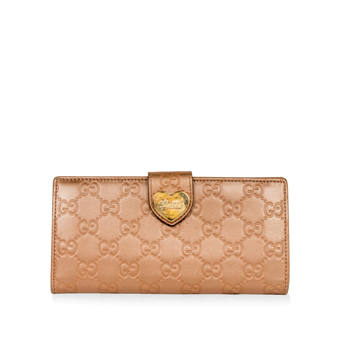 Carefully crafted in pink iridescent leather with Gucci's signature logo embossed throughout, this wallet is...