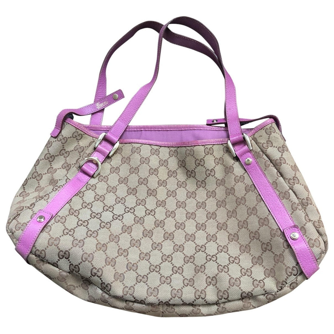 Gucci Tote Bag in pink micro monogram canvas with a brown leather trim, and dual...