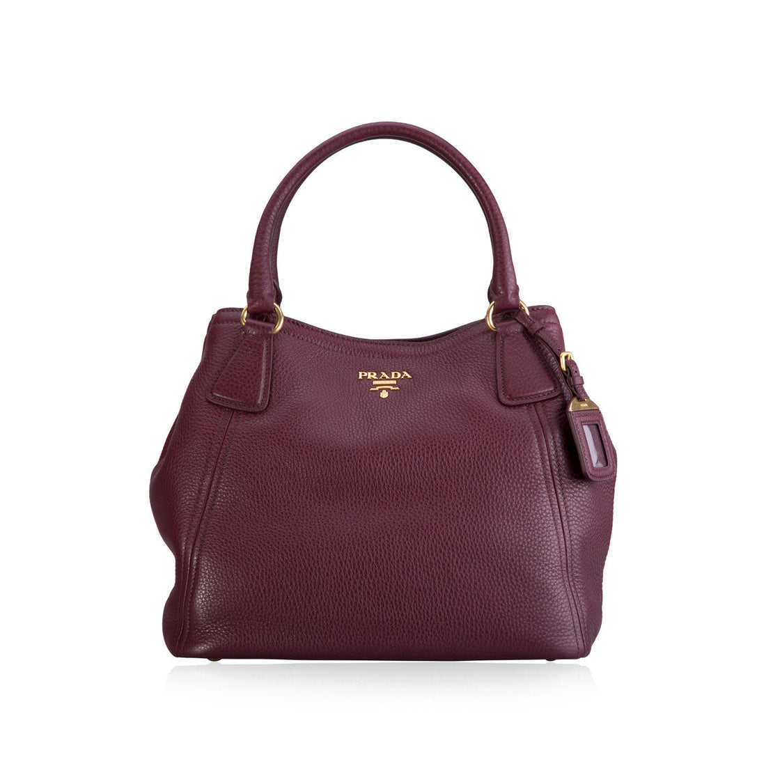 Stylish Prada Saffiano leather tote bag in dark purple. Featuring double top handles, single adjustable...