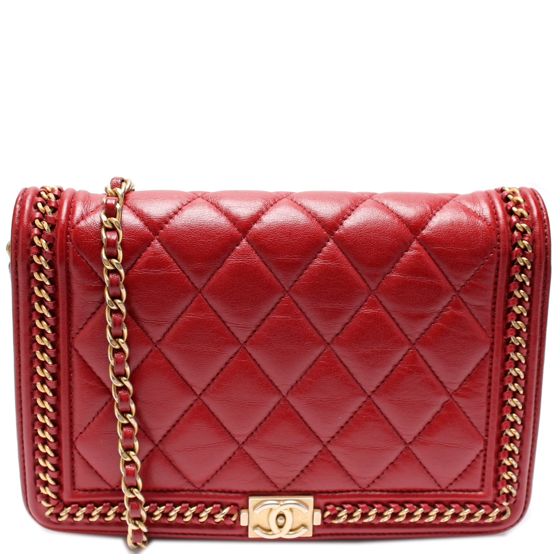 This Chanel Boy WOCis eye catching bag. The exterior is in the classic Quilted Lambskin. Condition:...