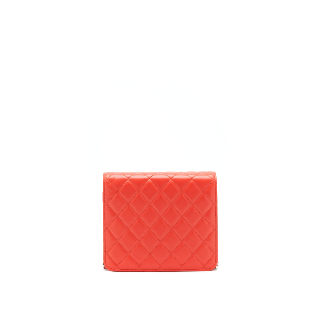 Chanel Square Wallet On Chain Coral Red Lambskin SHW