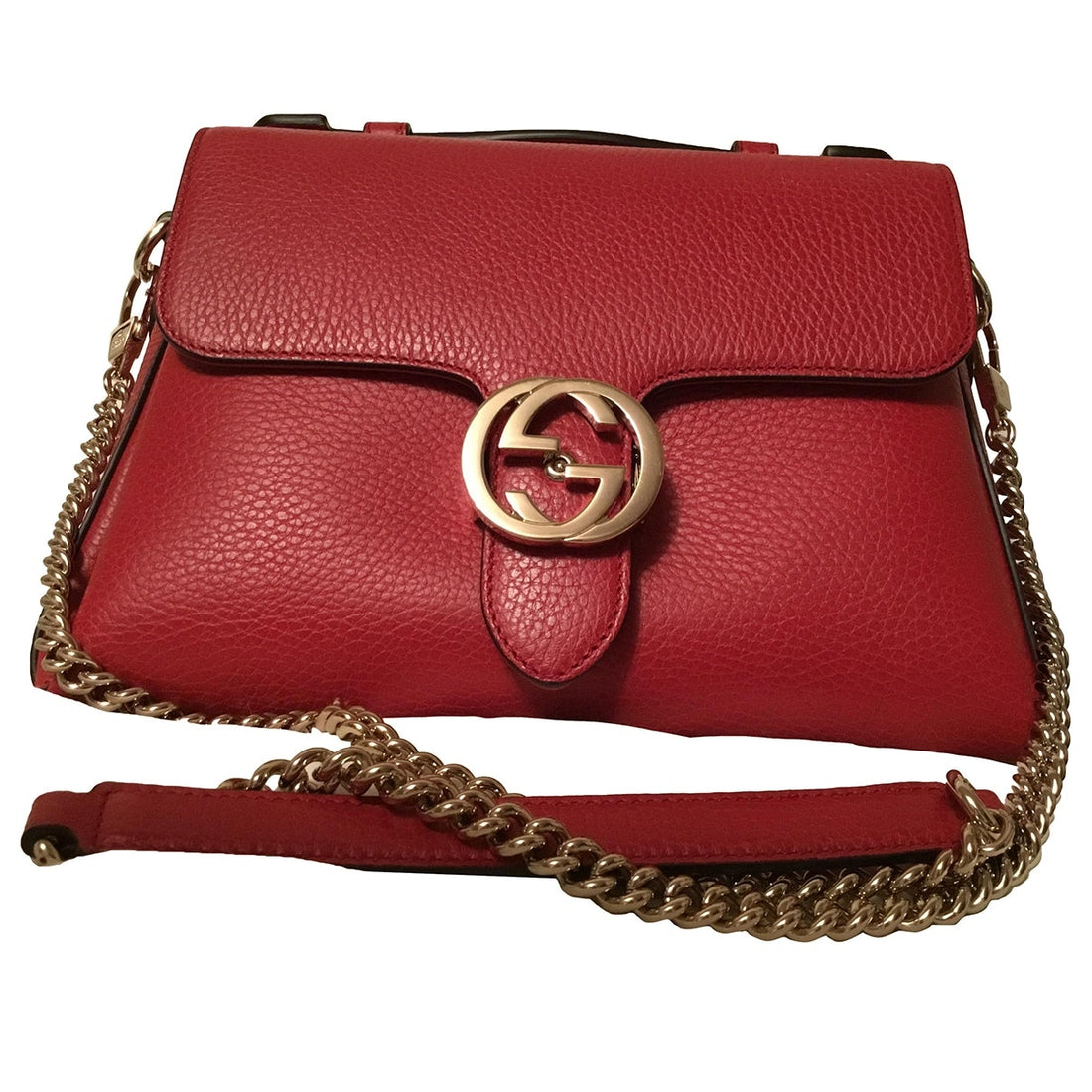 Gucci Lady Web in medium size. Completely made with hibiscus red leather and combined with...