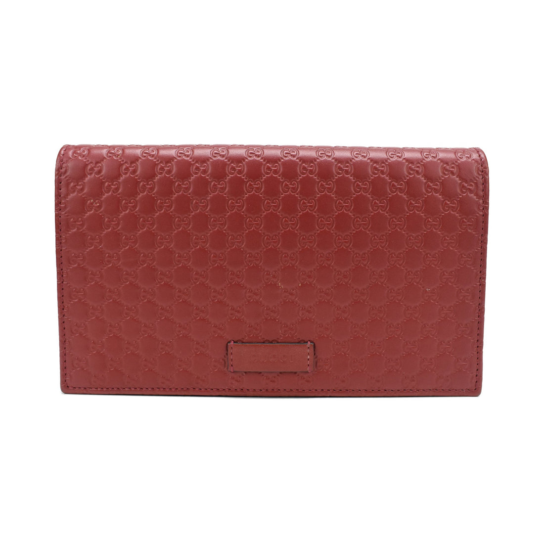 Gucci wallet on chain in red microgucissima monogram embossed leather with a removable crossbody strap,...
