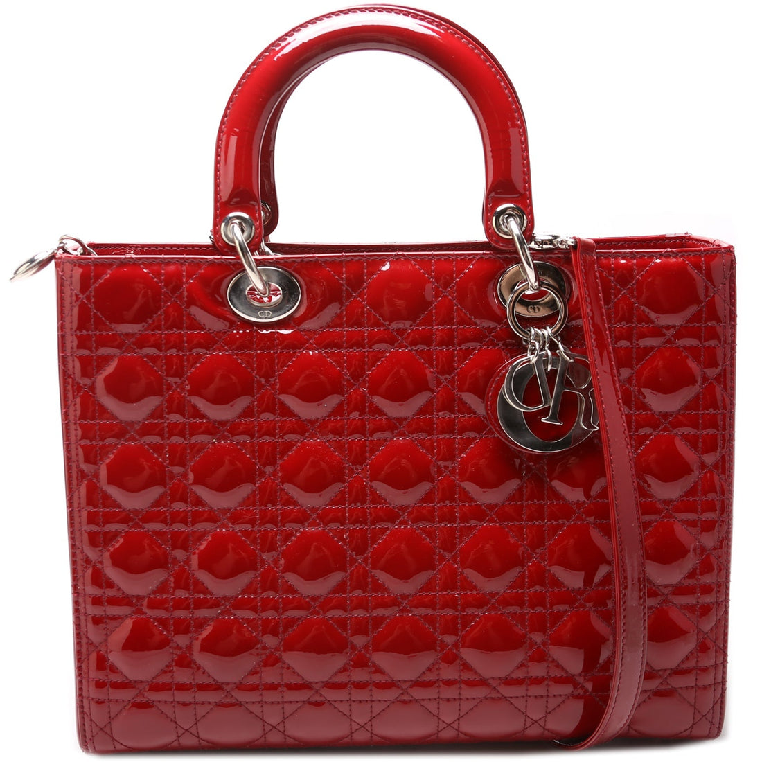 This Lady Dior Large Patentis eye catching bag. Condition: Very Good Serial Number: 16-BO-0121 Color: Red...