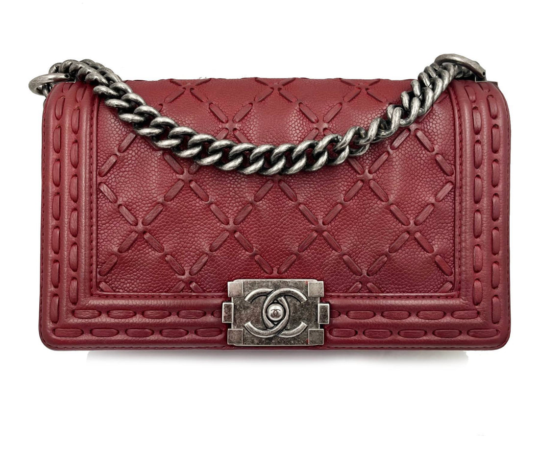 Top Quality Chanel Dark Burgundy Dallas Stitch Medium Boy Bag