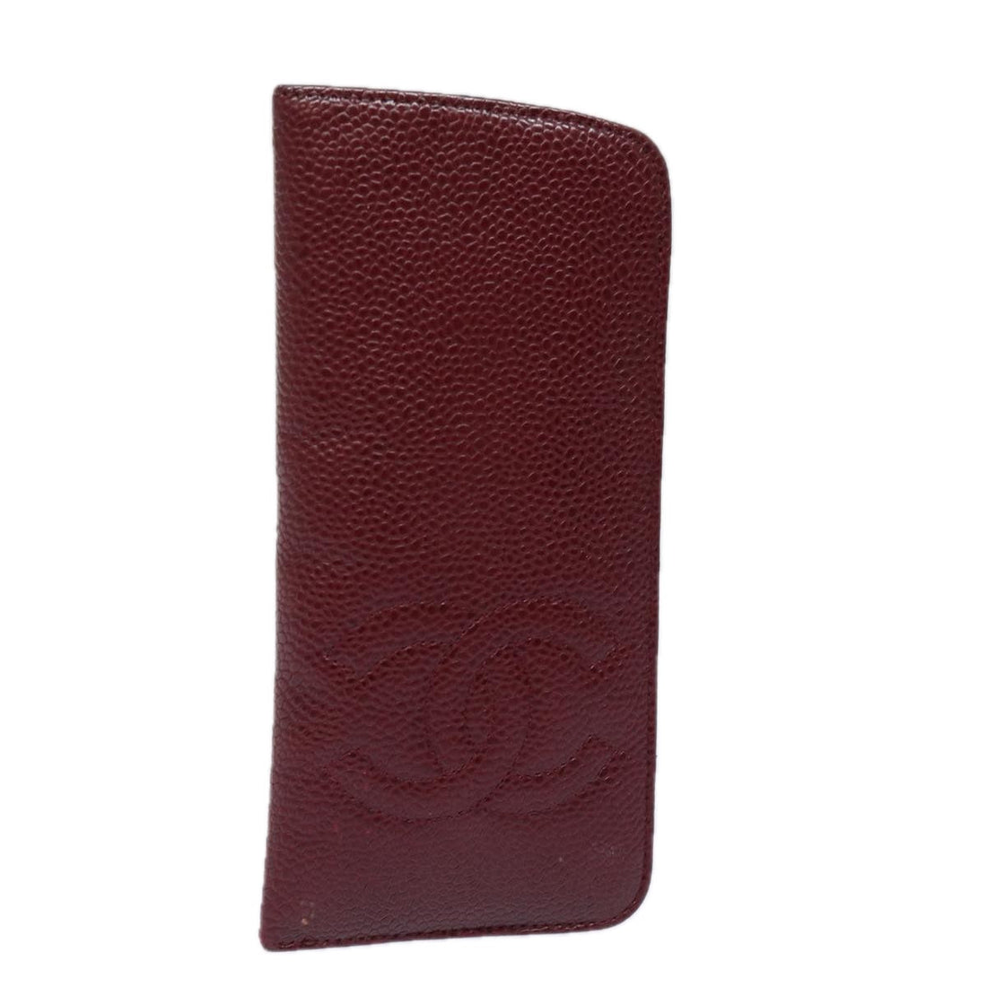 Top Quality Chanel Glasses Case Caviar Skin Bordeaux CC Auth bs16462