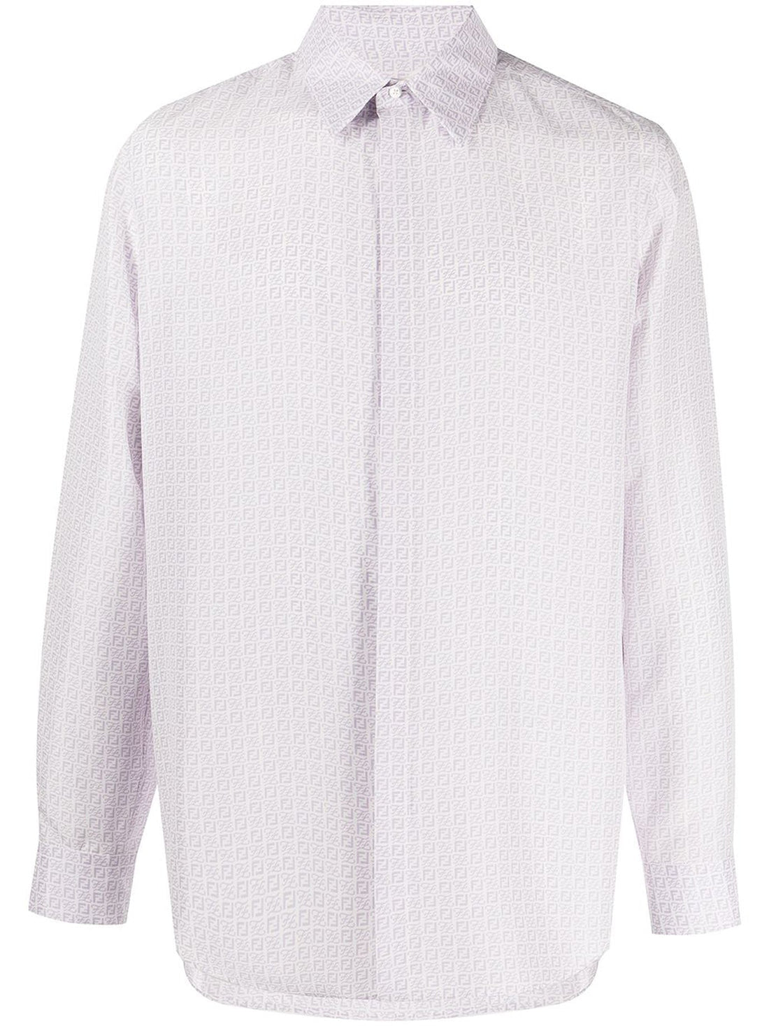 Elegant oversized silk shirt featuring an all-over jacquard FF motif Classic pointed collar for a...