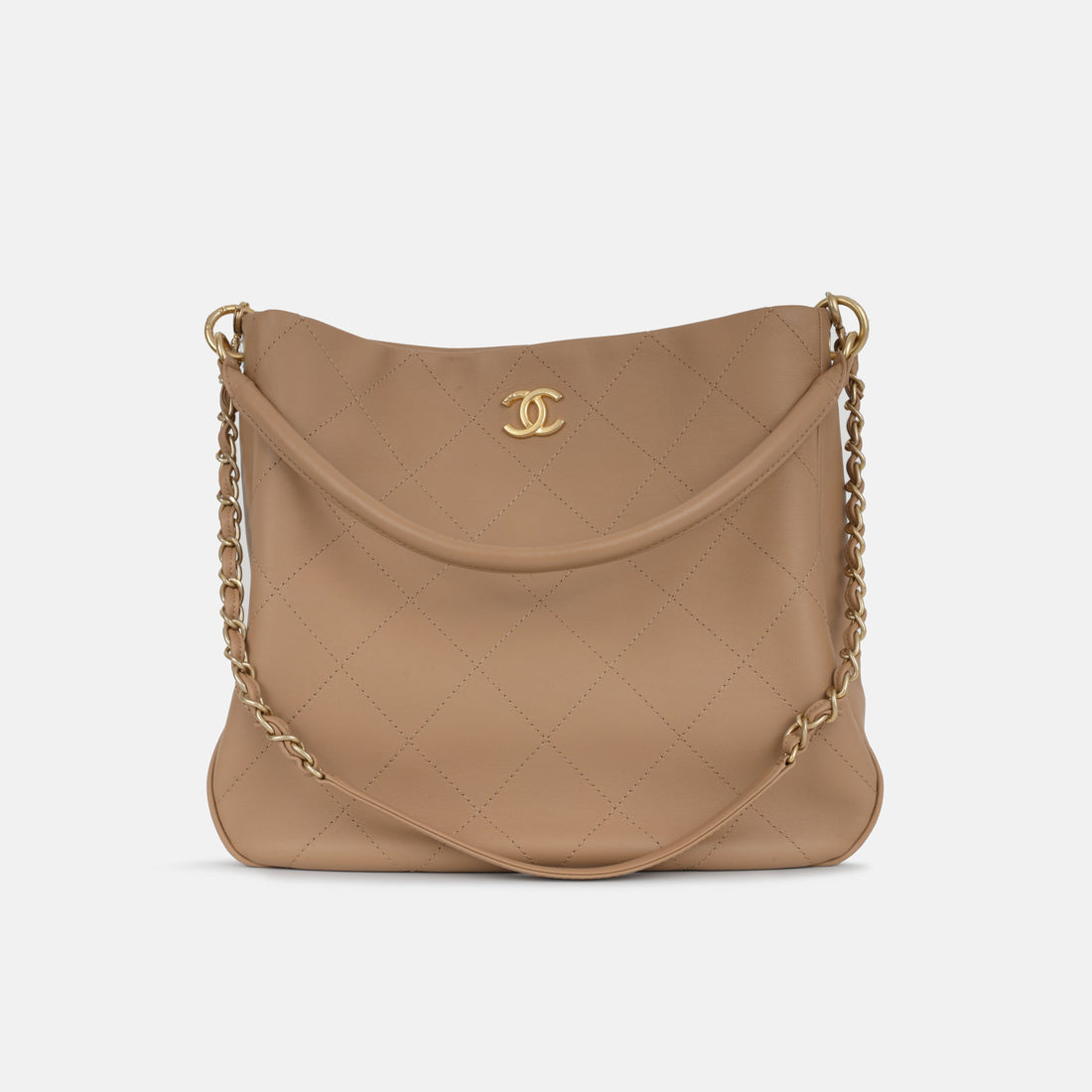 Crafted from high-quality quilted calfskin leather, the Chanel Hobo Bag exudes refinement and durability. Its...