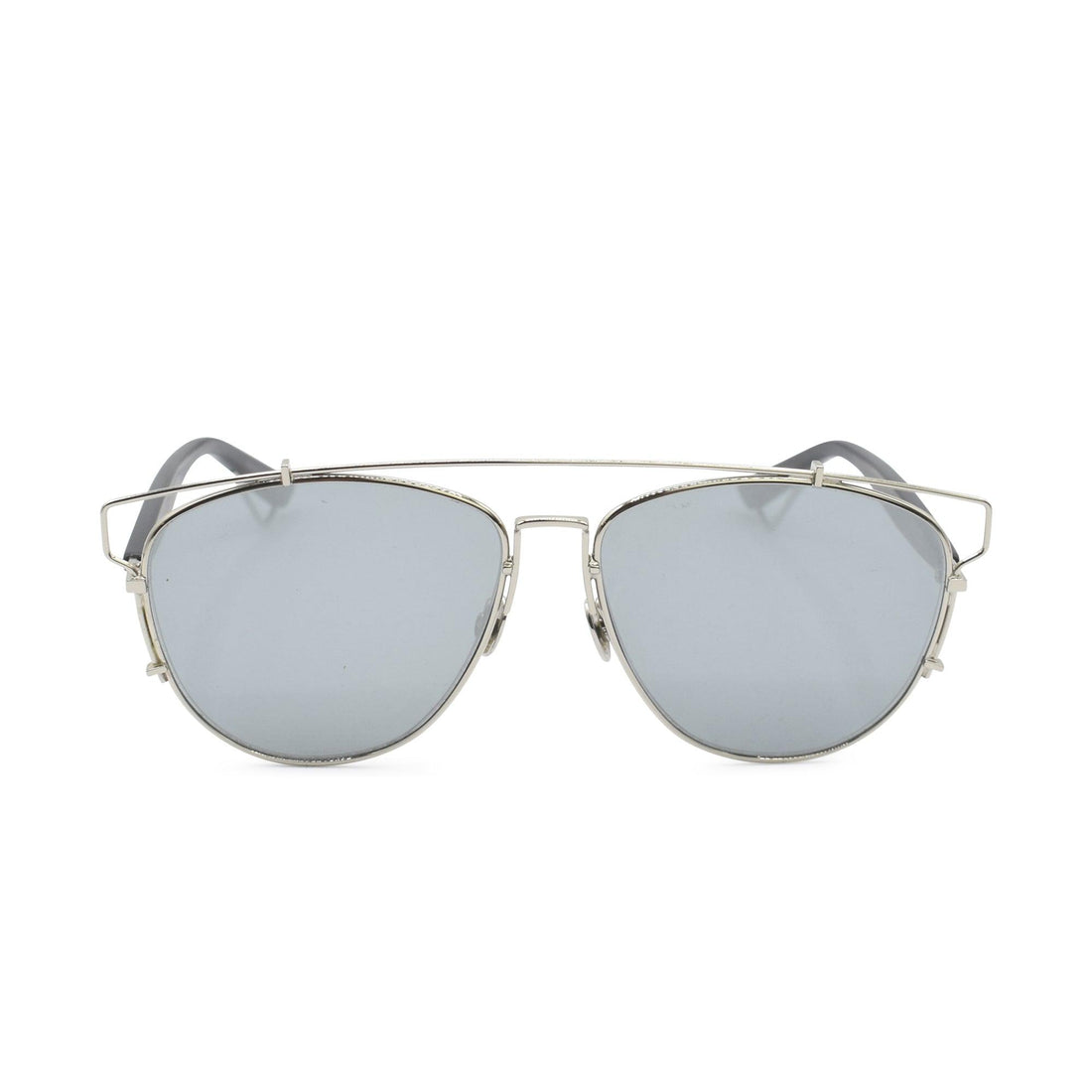 Christian Dior 'Technologic' sunglasses with silver metal frame, black plastic arms, and mirrored lens. Includes soft...