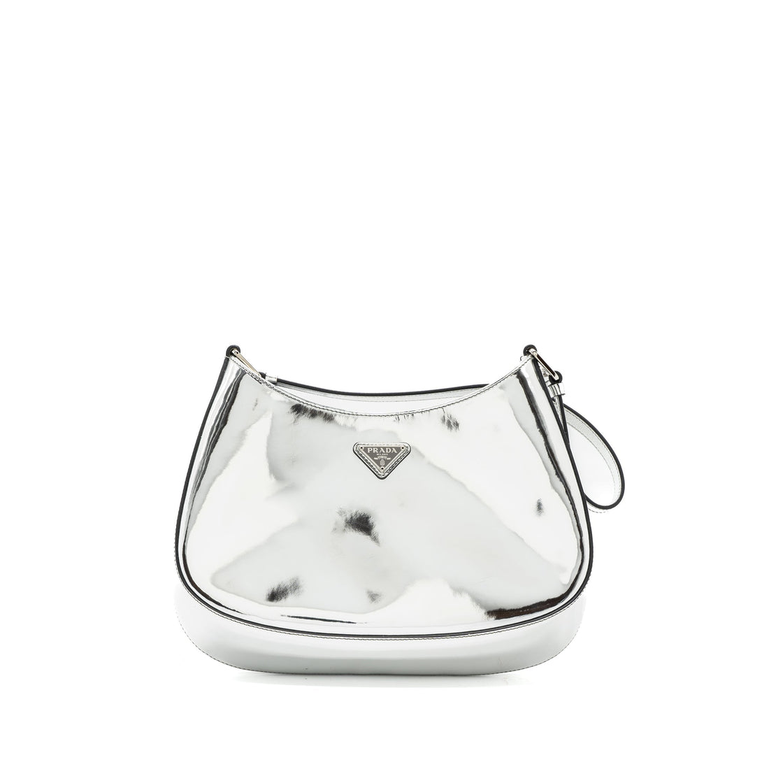 Prada Borsa A Spalla Cleo Pelle Spazzolato Leather Argento SHW