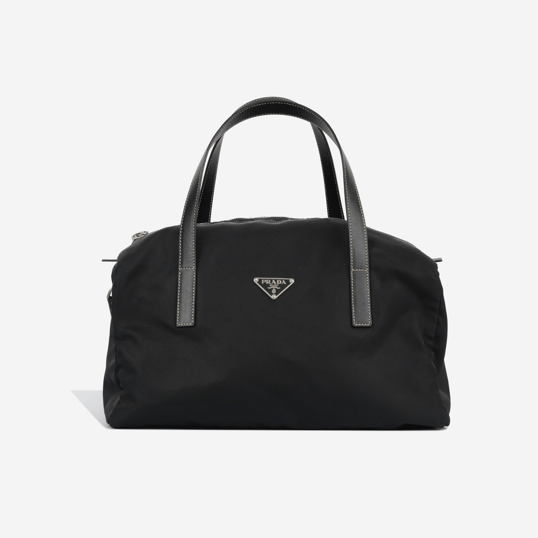 This bowling bag from Prada carries the classic enlarged logo on the front, and is...