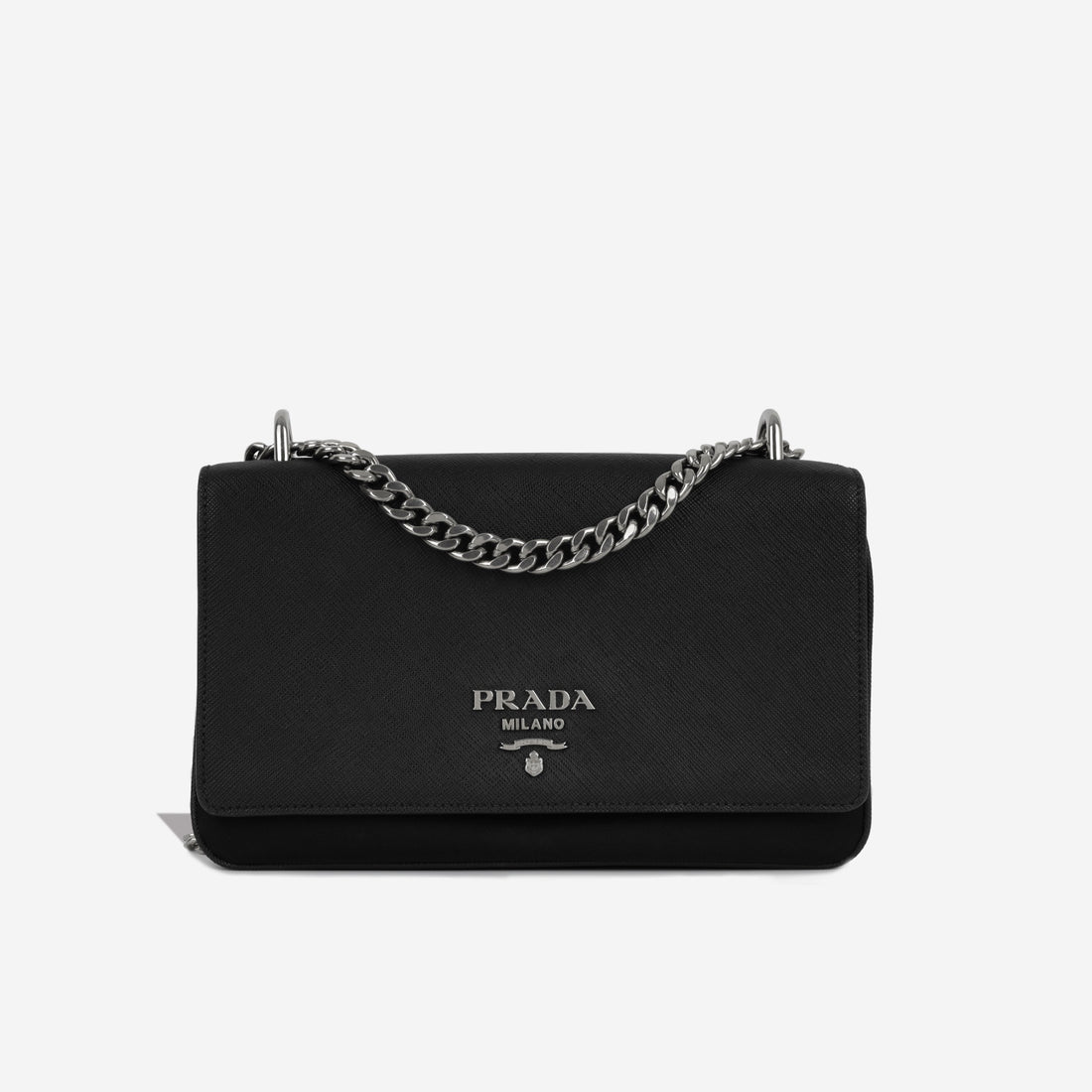 Prada presents their stunning cross body bag in a combination of their iconic materials. With a...