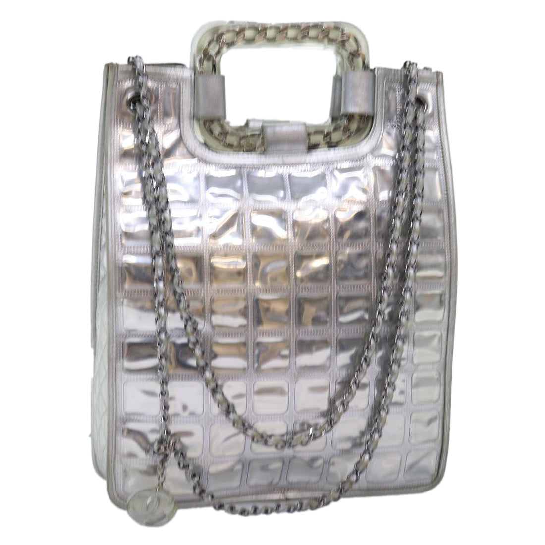 CHANEL Ice Cube Chain Shoulder Bag Vinyl 2way Silver CC Auth 71650BRAND : CHANEL Color...