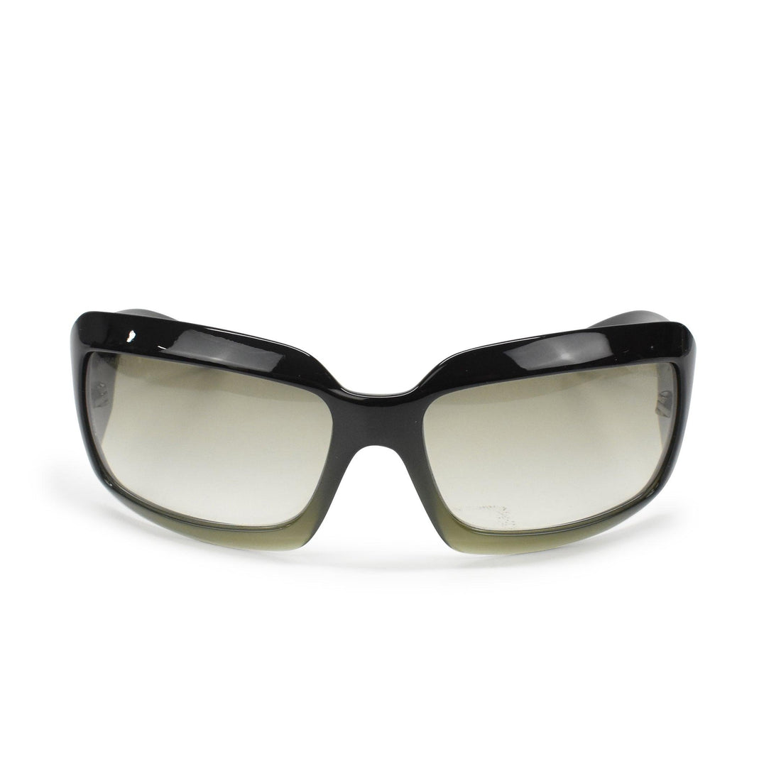 Chanel rectangle sunglasses in black/green ombre acetate with a black reptile embossed 'CC' logo on...