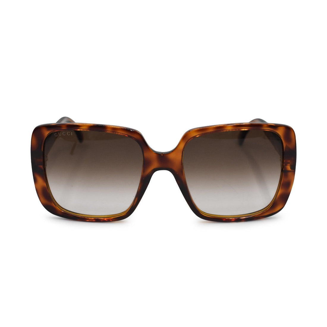 Gucci oversized square sunglasses in orange tortoiseshell acetate with gold 'GG' logo on the arms....
