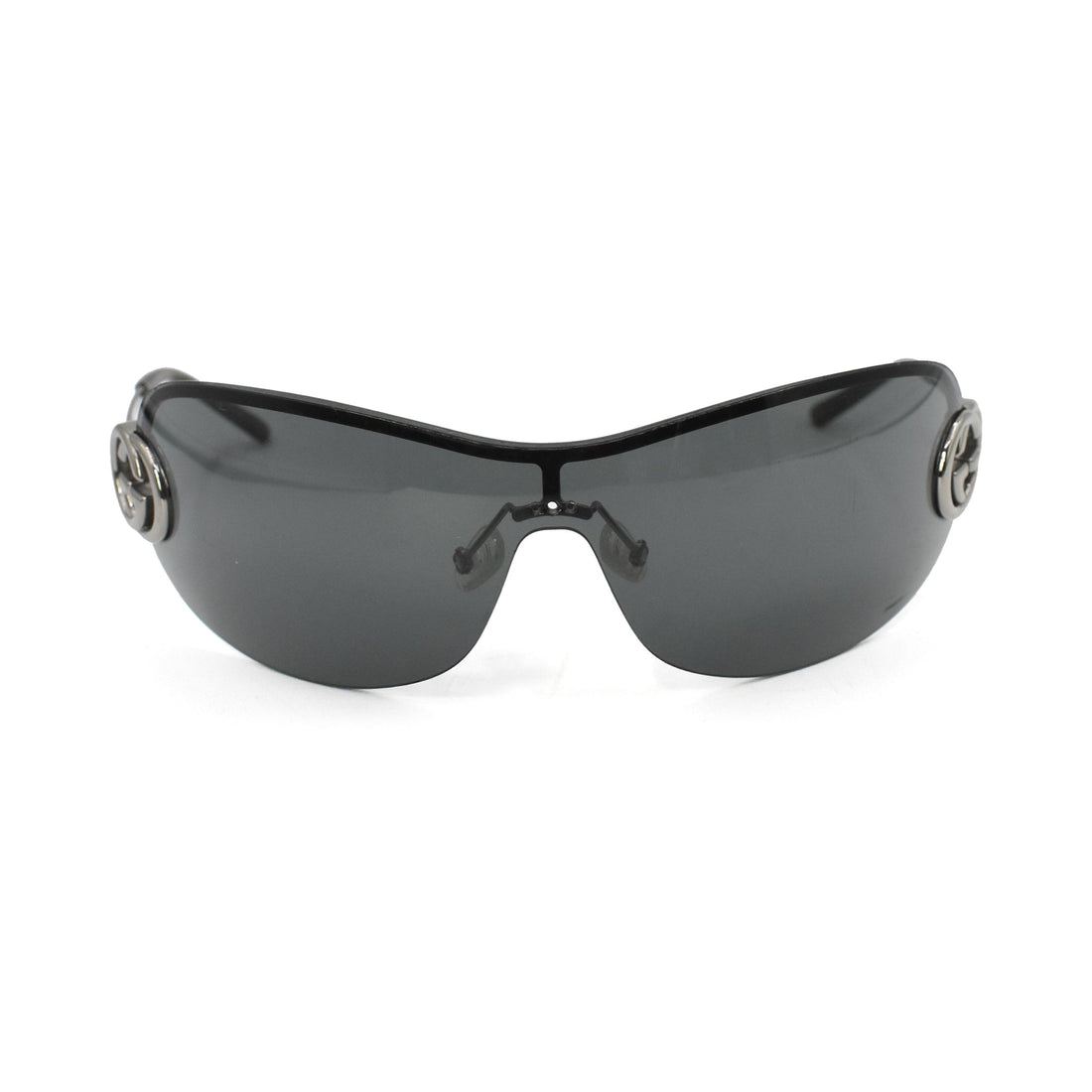 Gucci shield sunglasses in silver metal with a black lens and a large 'GG' emblem...