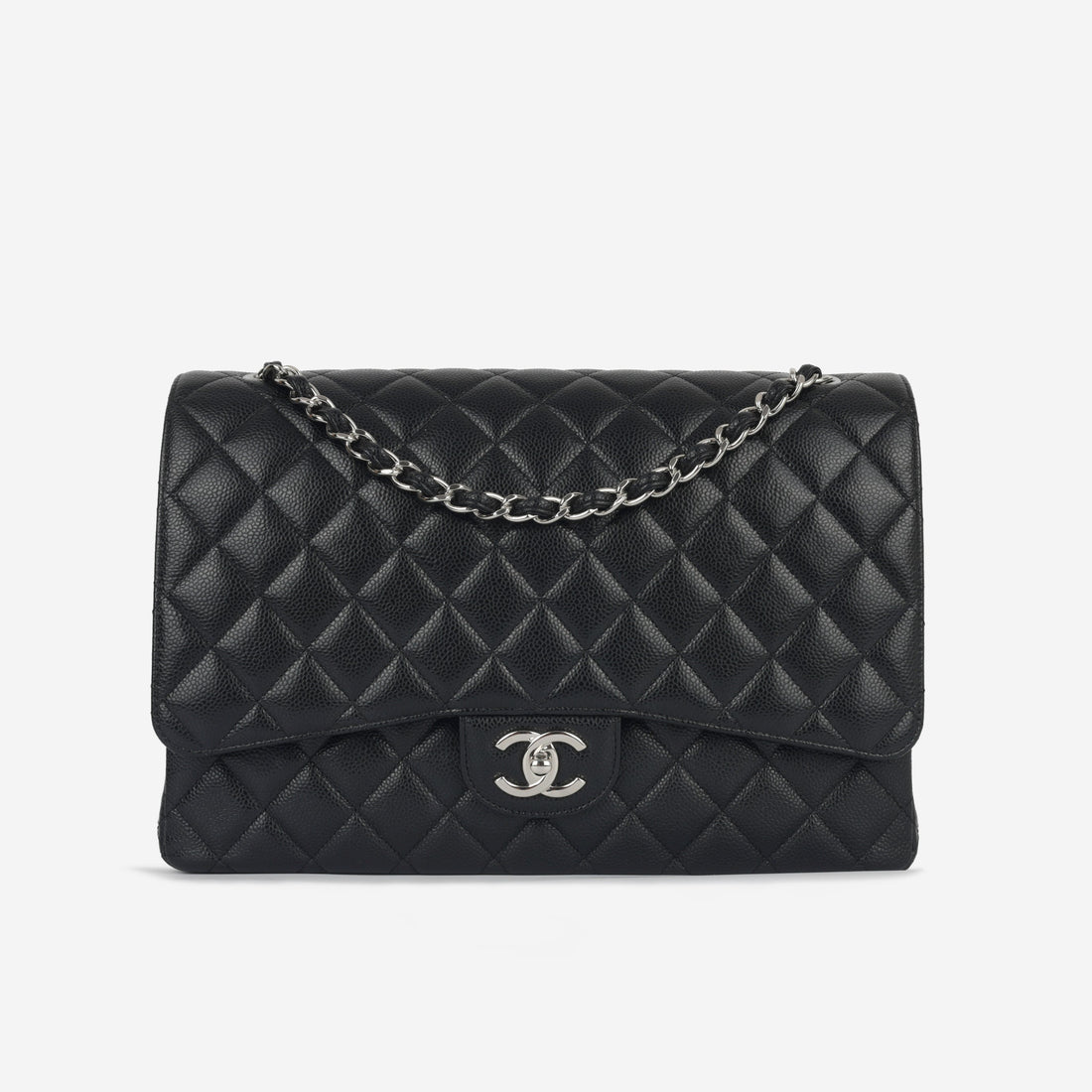 Chanel Classic Maxi Double Flap Black Caviar Silver Hardware (2023)