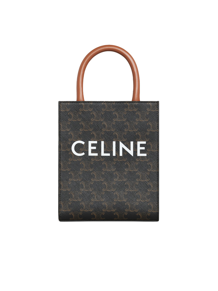 Mini Vertical Cabas Celine in Textile with Celine Print and Calfskin in Tan