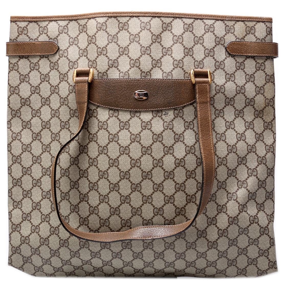 This Gucci GG Supreme Vertical Vintage Toteis eye catching bag. The exterior is in the...