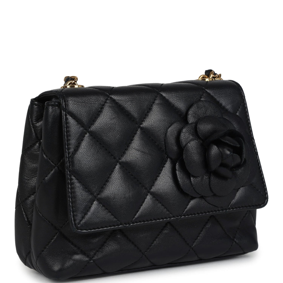 Vintage Chanel Mini Camellia Flap Bag Black Lambskin Gold Hardware