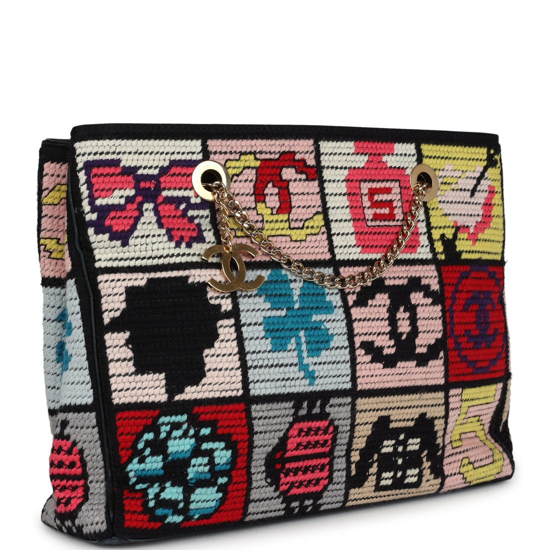 Vintage Chanel Precious Symbols Needle Point Tote Multicolor Wool Gold Hardware