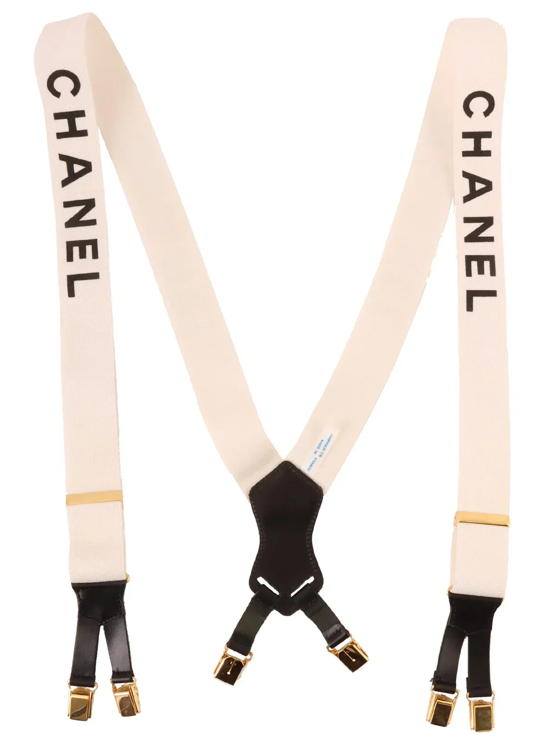 CHANEL Logo Suspenders WhiteMeasurements: Chain Min 61cm„ÄÄMax 101cm W 3.5cm