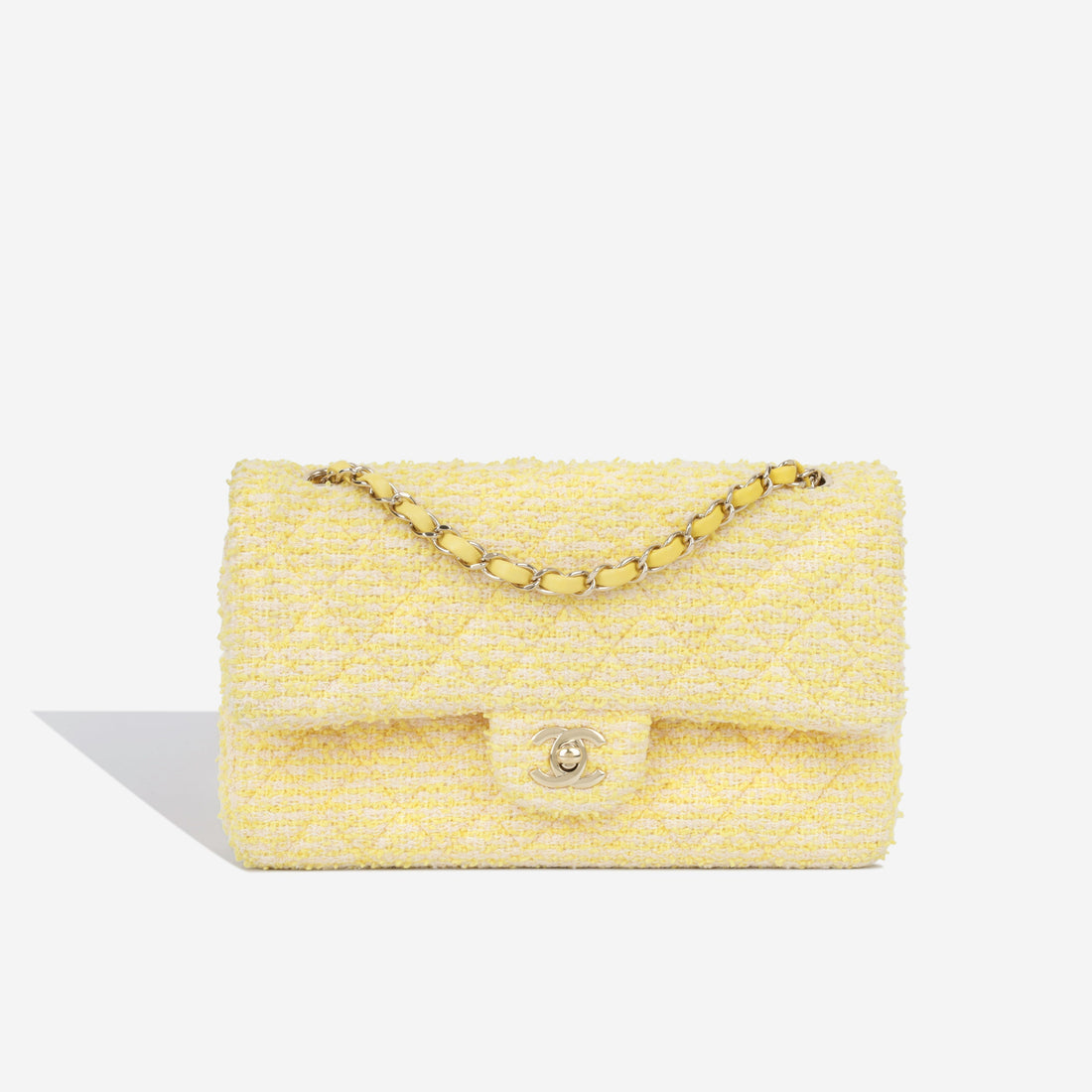 Chanel Medium 19 Flap Bag Light Yellow Wool Mixed Metal Hardware