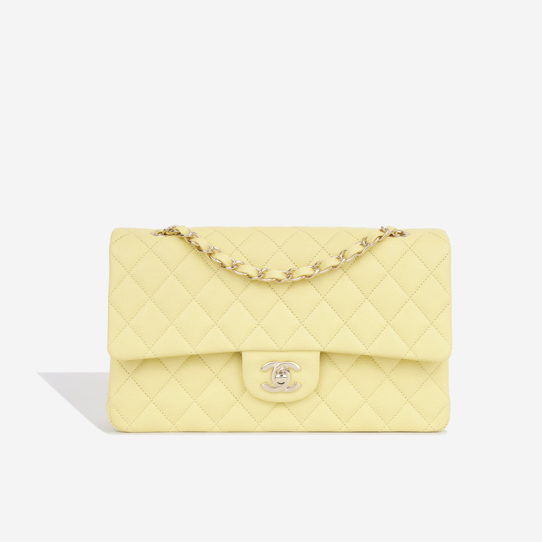 Chanel Medium Classic Double Flap Bag Yellow Iridescent Caviar Light Gold Hardware