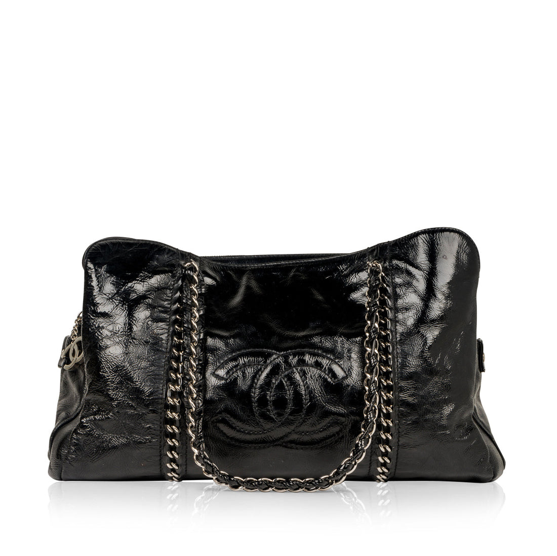 Crafted from sleek, shiny patent leather, Chanel presents their timeless East West tote. With more...