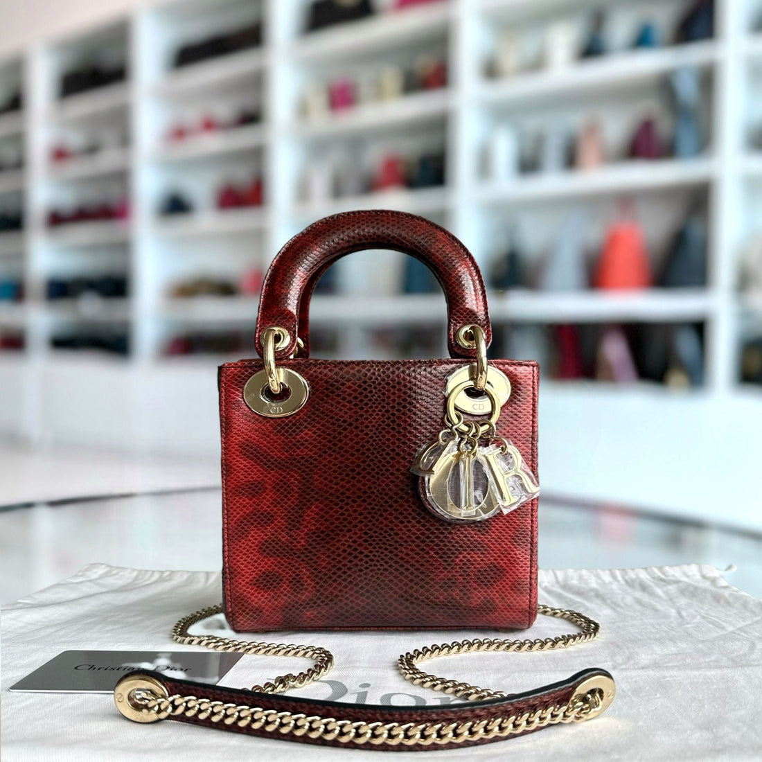 *Lizard, Chain Strap* Lady Mini Exotic Lizard Leather Dark Red GHW
