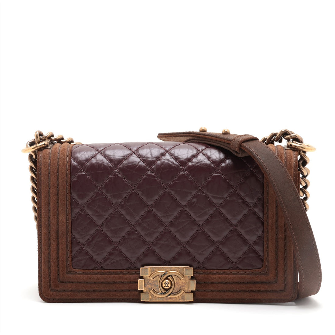 Chanel Boy Chanel Leather X Chain Shoulder Bag Bordeaux X Brown G 18th